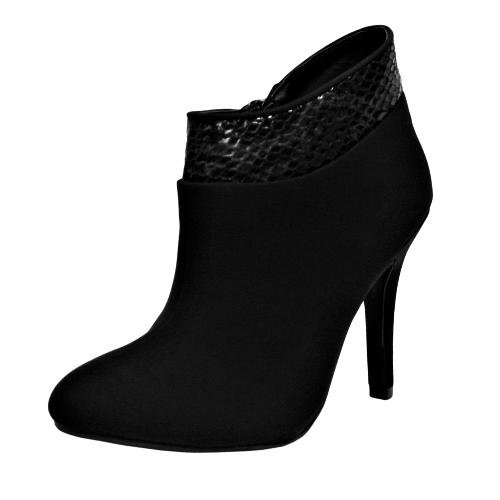 !±8±Black Ankle Bootie With Snake Textured Trim
